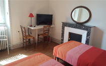 Le lieu offre cinq chambres, partagées à deux lits, avec trois sanitaires communs.