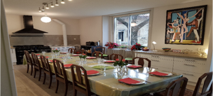 Un salon de détente et un espace commun permettent de savourer les repas, confectionnés sur place, par Mady, notre cuisinière.